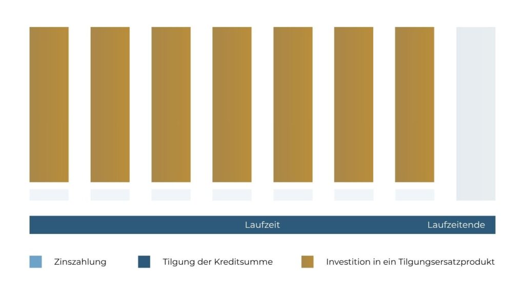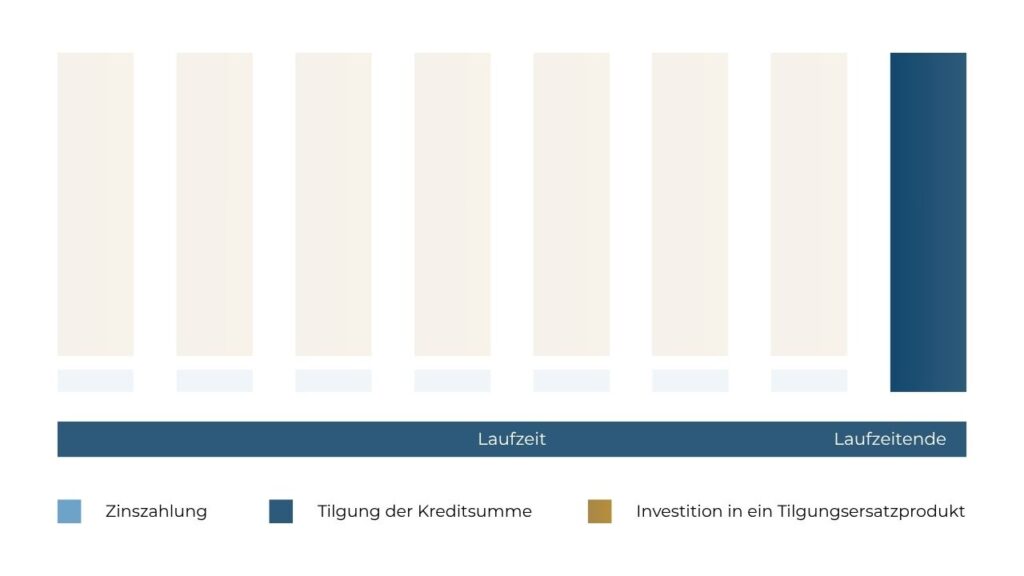 Das bedeutet: Während der gesamten Laufzeit zahlen Sie nur die Zinsen an die Bank – die eigentliche Tilgung entfällt.